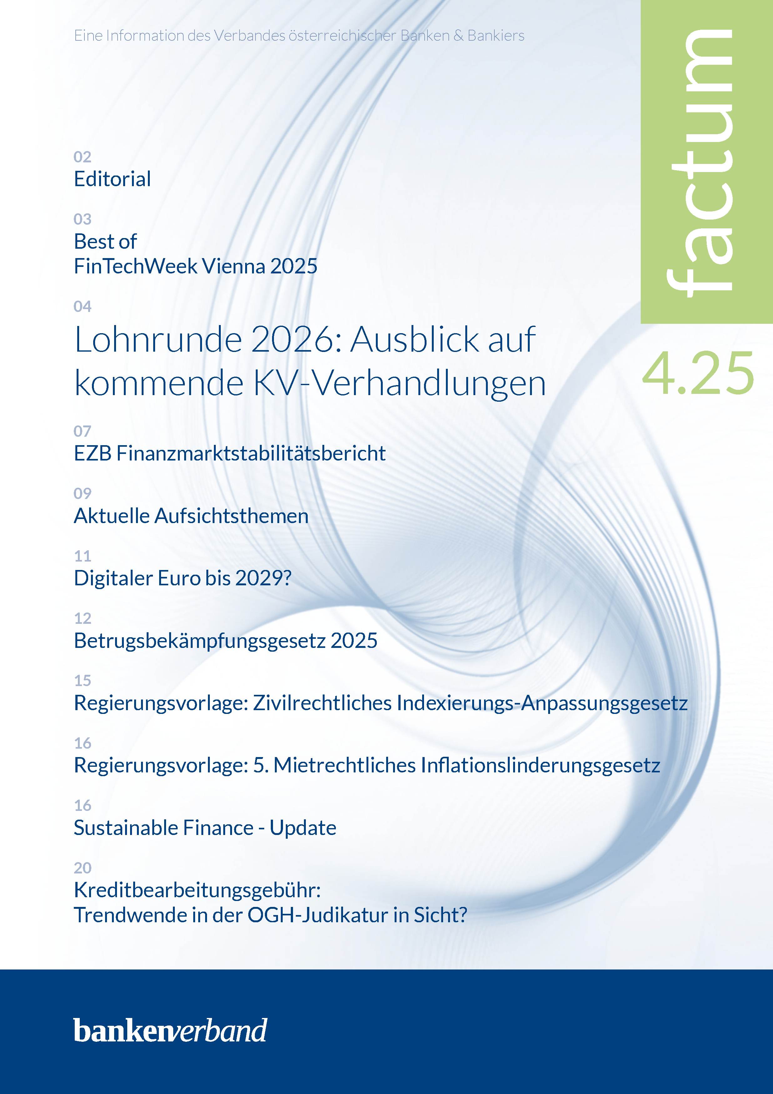 „factum“ ist eine vierteljährliche Publikation zu aktuellen Entwicklungen auf dem Bankensektor.